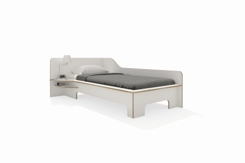 Das Plane Einzelbett des Herstellers Müller Möbelwerkstätten - wurde von Felix Stark entworfen. Das Bett begeistert durch seine harmonische Linienführung und der graphischen Formensprache. Felix Stark hat es geschafft Form und Funktion perfekt zu vereinen. Das geschwungene Design des Seitenteils ist nicht nur besonders hübsch, sondern auch nützlich als Raumteiler. Die fest installierte Doppelablage bietet viel Platz für Bücher, Lampe oder Handy. Zusätzlicher Stauraum stellt die optional bestellbare Bettlade am Fußende des Plane Bettes zur Verfügung. Gefertigt wird das Bett aus umweltfreundlichem Birkenschichtholz aus Finnland. Die Birken-Multiplexplatten sind spezialbeschichtet und die Kanten naturbelassen und geölt.