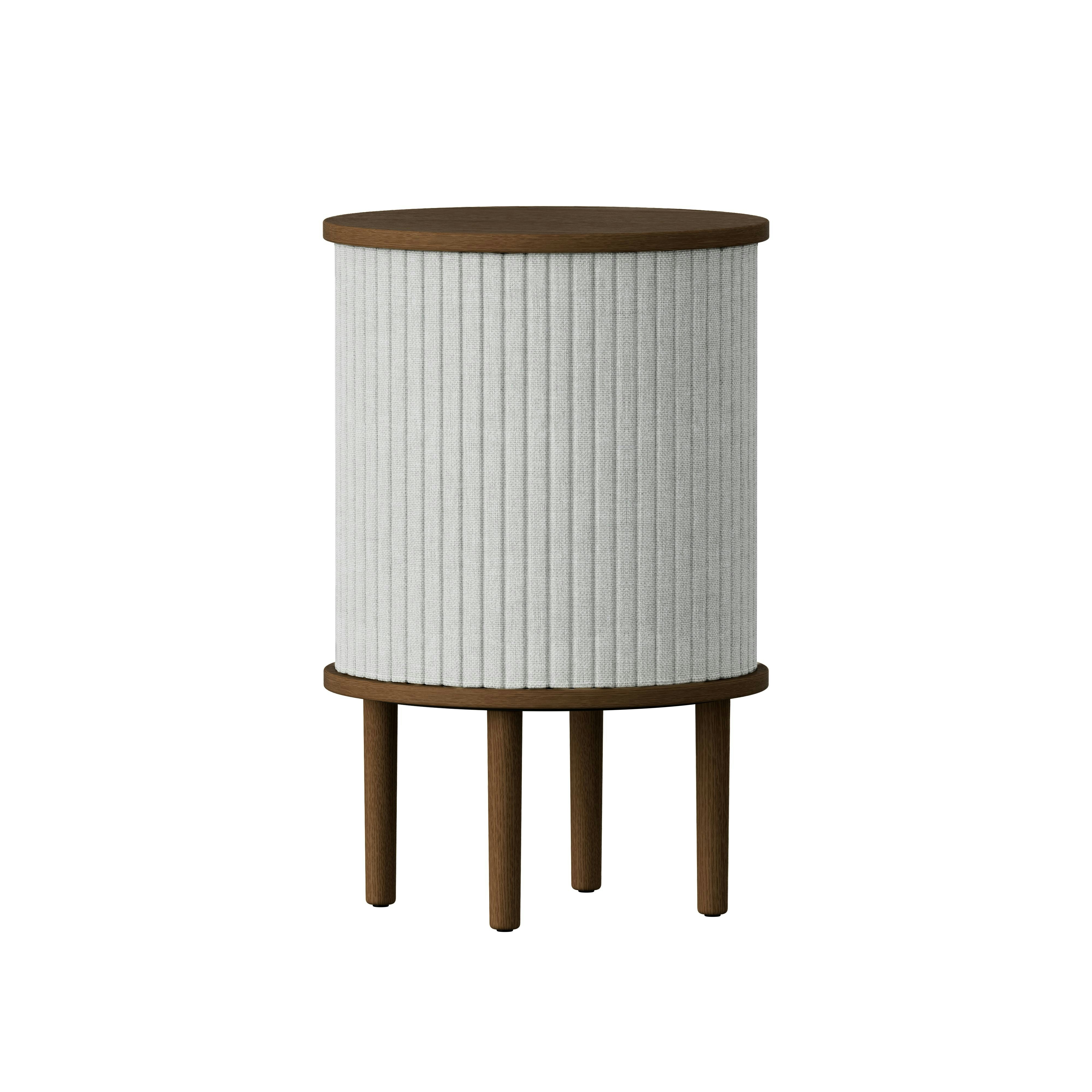 Das Audacious Sideboard von UMAGE ist ein gutes Beispiel für die Anwendung dieser selbstgesteckten Forderungen. Es ist ein Möbel mit Charakter, das gefertigt wurde, um den Lieblingsgegenständen im Zuhause eine würdige und interessante Bühne zu geben. Die Rolltüren schließen sich um den Rand des Side Boards, so dass jeder selbst entscheiden kann, wie viel des Innenlebens zur Schau gestellt werden soll. Wird die Position der Türöffnung verändert, eröffnen sich neue Sichtfelder und Ausschnitte. Die Ablagefläche ist aus massiver Eiche und die Rolltüren sind mit einem unempfindlichen Textil verkleidet.