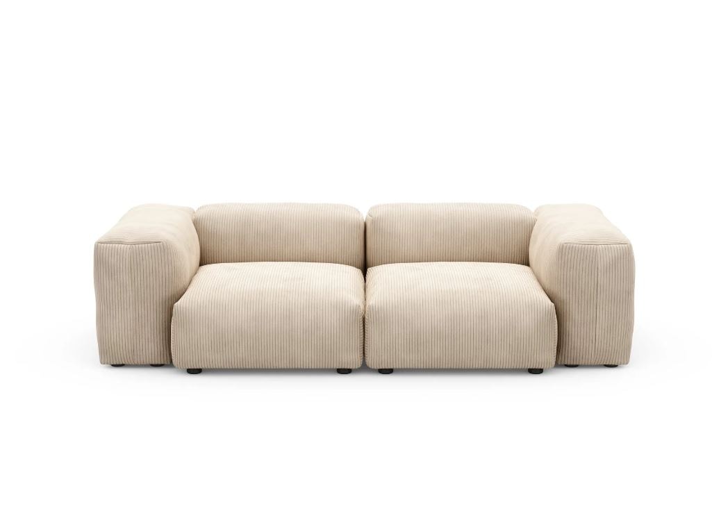 Modular, waschbar und bequem: Das Small 2-Sitzer Sofa Cord Velours von Vetsak erfüllt so ziemlich jeden Wunsch, den man hinsichtlich Sofawahl hegen kann. Der deutsche Hersteller Vetsak hat das innovative Modulsofa vor einigen Jahren auf den Markt gebracht, seitdem erfreuen sich Sofa und Zubehör immer größerer Beliebtheit. Die 2-Sitzer Variante ist dabei die ideale, vorkonfigurierte Wahl für Alleinstehende und Familien. Das Sofa bietet mit der extratiefen Liegefläche von 84 cm genug Platz für alle. Die kompakte Gesamtbreite von 231 cm ist auch in kleineren Wohnzimmern gut unterzubringen. Und das Beste: Sollte das Sofa doch einmal zu klein werden, weil sich Lebens- und oder Wohnsituation ändern, dann kann es spielend leicht mit weiteren Modulen erweitert werden. Und auch hinsichtlich Farbwahl muss man keine Bindung für immer eingehen, Geschmäcker und Trends verändern sich nun einmal ab und zu. Mit dem Small 2-Sitzer Sofa Cord Velours von Vetsak kein Problem, denn die Bezüge sind abnehmbar und austauschbar. Das hat auch noch einen weiteren Vorteil: Die Bezüge können einfach auch zwischendurch abgenommen und bei 30 Grad in der Waschmaschine gereinigt werden. Der 100 Prozent vegane Cord Velours Stoff ist aber auch so strapazierfähig und alltagstauglich. Mit dem Small 2-Sitzer Sofa Cord Velours von Vetsak entscheiden Sie sich für ein nachhaltiges, in der EU hergestelltes Sofa, das flexibel wie das moderne Leben ist.